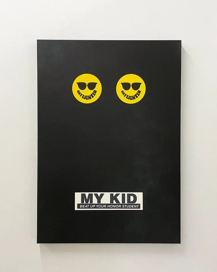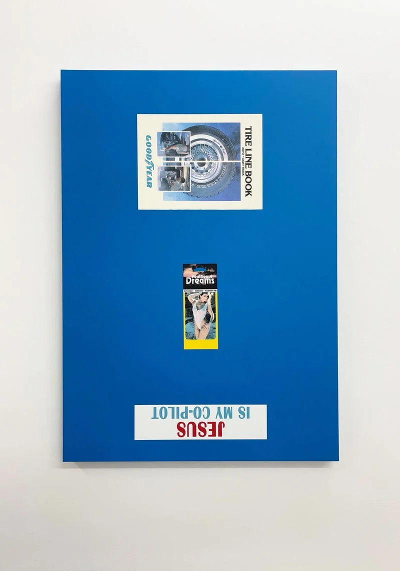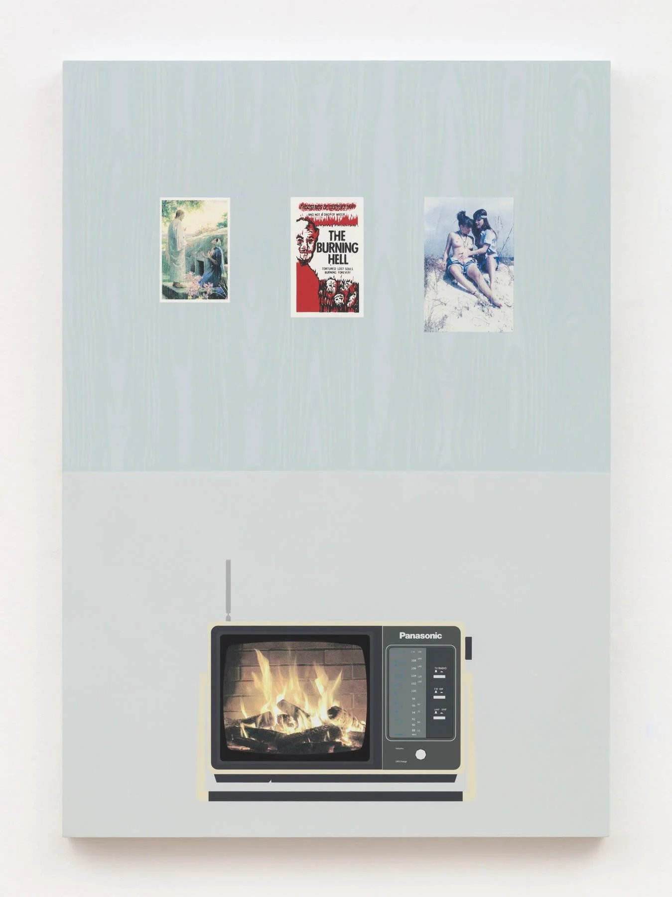 Acrylic on paper - found VHS cassette with Acrylic on paper case with case - acrylic on wood, 16.5” x 12”