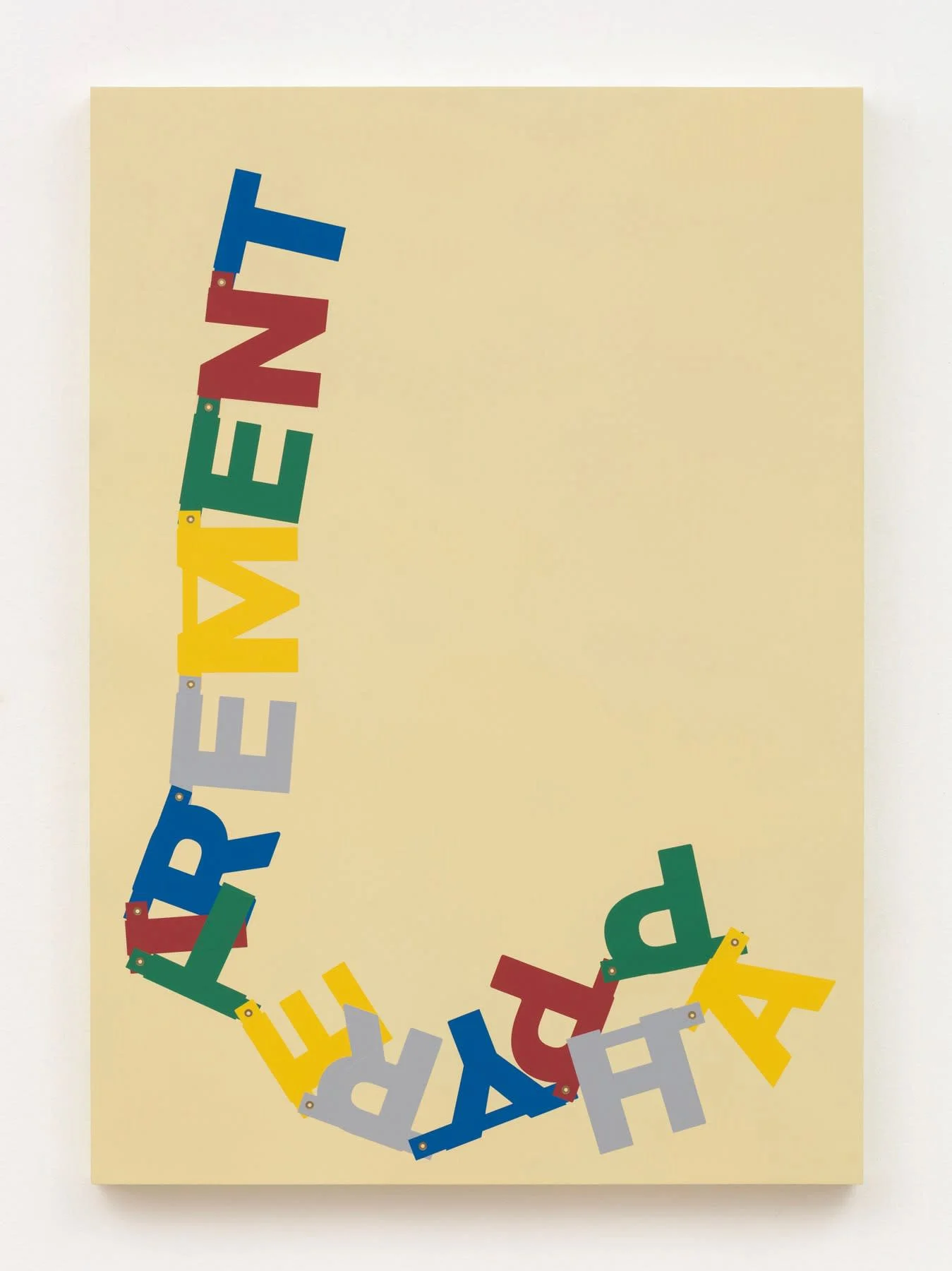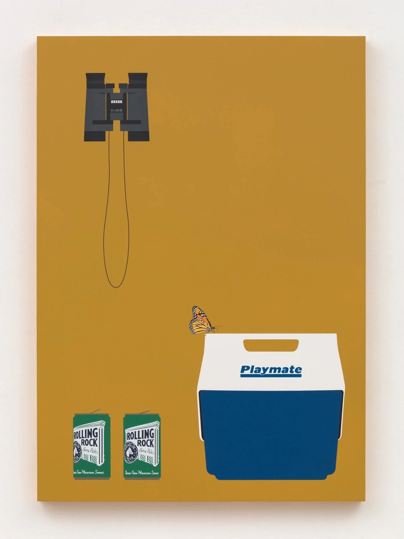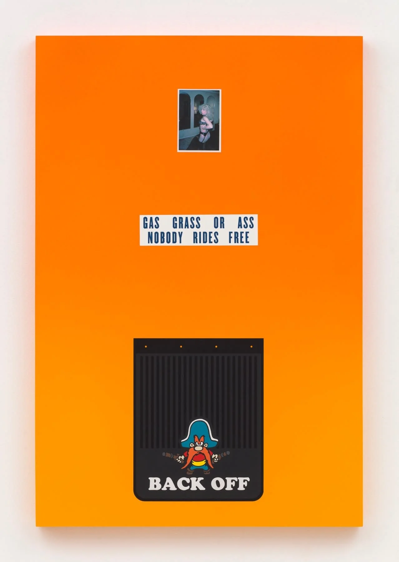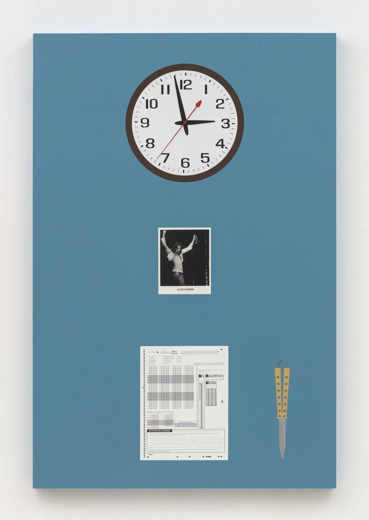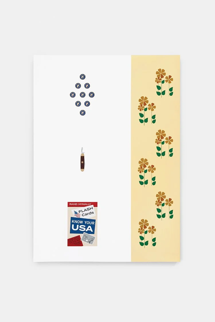 Acrylic and flashe on panel, with carved bass wood and metal, 32” x 24”